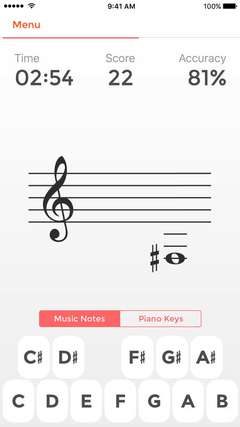 With Music Tutor, you can learn to read sheet music and improve your sight-reading skills. Develop your speed and accuracy in reading sheet music by identifying music notes in timed sessions. Choose to practice with notes in treble, bass and alto clefs in timed or untimed sessions.