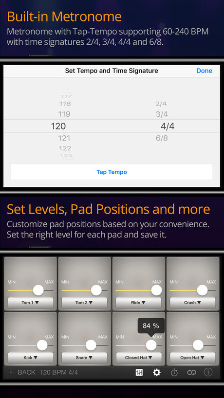 Metronome M1 is a simple and extremely accurate metronome for mobile devices. It comes with all the essential features anyone will need from a metronome. It also includes professional features such as increasing tempo, subdivisions, customizable sounds, custom time signatures etc.